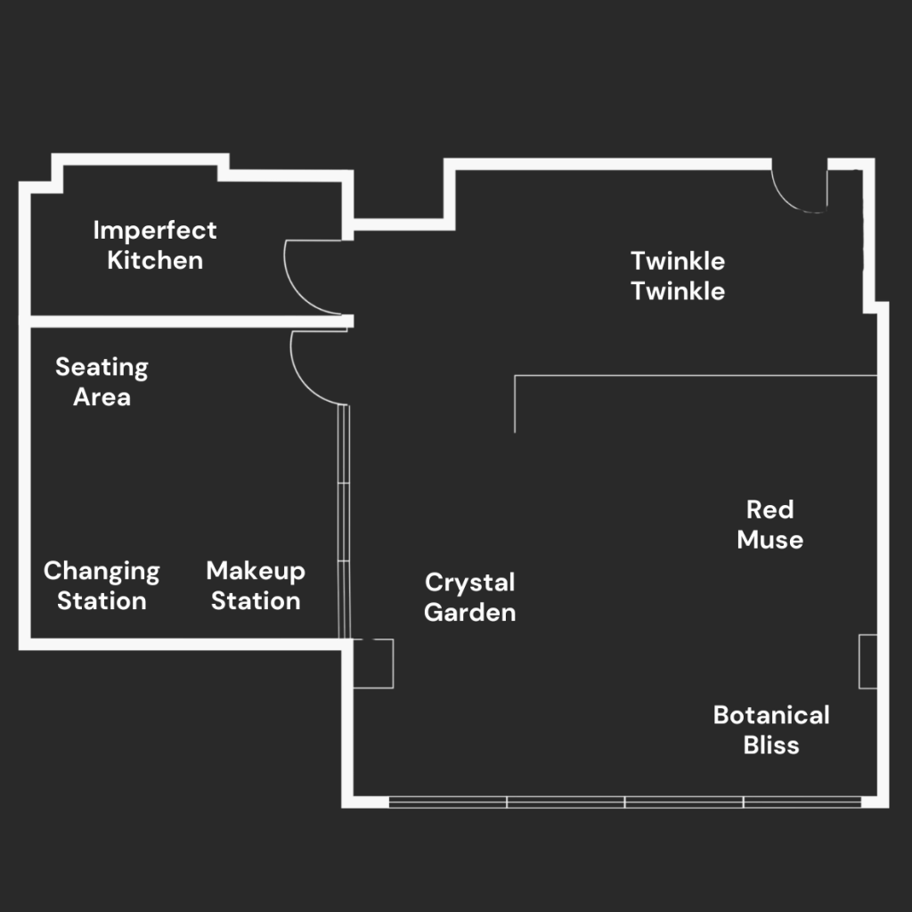 A dazzling fusion of modernity and glamour. With reflective mylar walls, sparkling disco balls, and a futuristic ambiance, this dynamic space is perfect for bold and celebratory photoshoots.